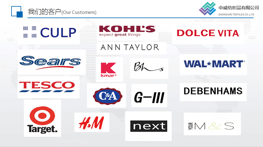 中威紡織主要經(jīng)營麂皮類家紡及各類服裝面里料,并可根據(jù)客戶要求研發(fā)、生產(chǎn)及深加工各類面料。公司產(chǎn)品遠銷美國、墨西哥、南美、歐洲等世界各地。公司自成立以來,憑著優(yōu)良的品質(zhì)、合理的價格以及完善的服務(wù),贏得了國內(nèi)外客戶的信賴。目前公司已與世界眾多大品牌建立了良好的業(yè)務(wù)往來。